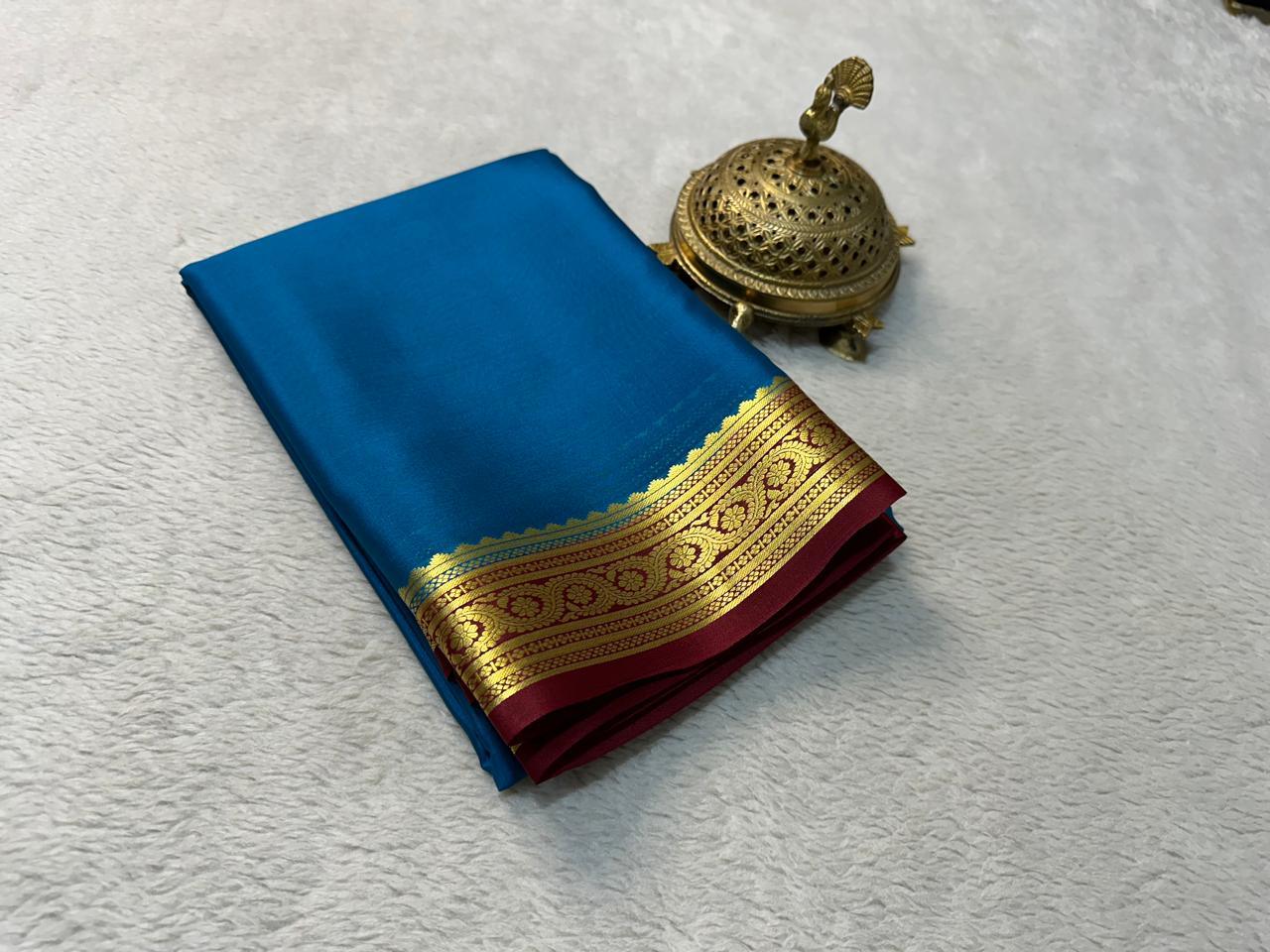 Iconic Elegance: Mysore Silk Saree with Sophisticated Border Craftsmanship