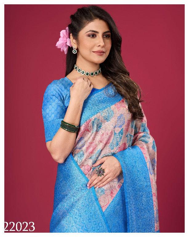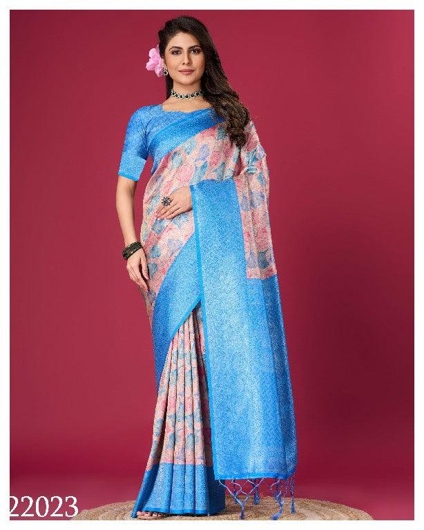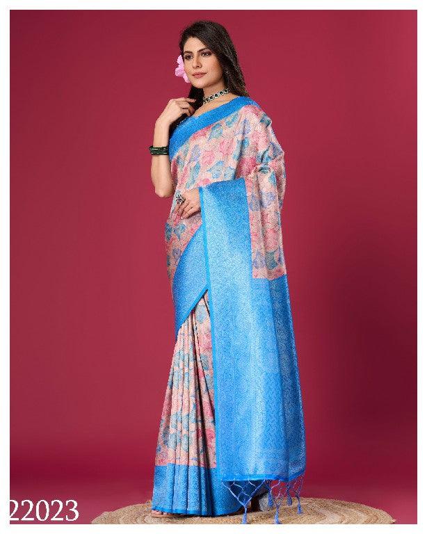 Indulge in the luxurious beauty of Digital printed sarees. Adorned with a Traditional border and beautiful contrast colour combination, these sarees will bring elegance and grace to your wardrobe. Embrace the passionate and inspiring appeal of these sarees today!