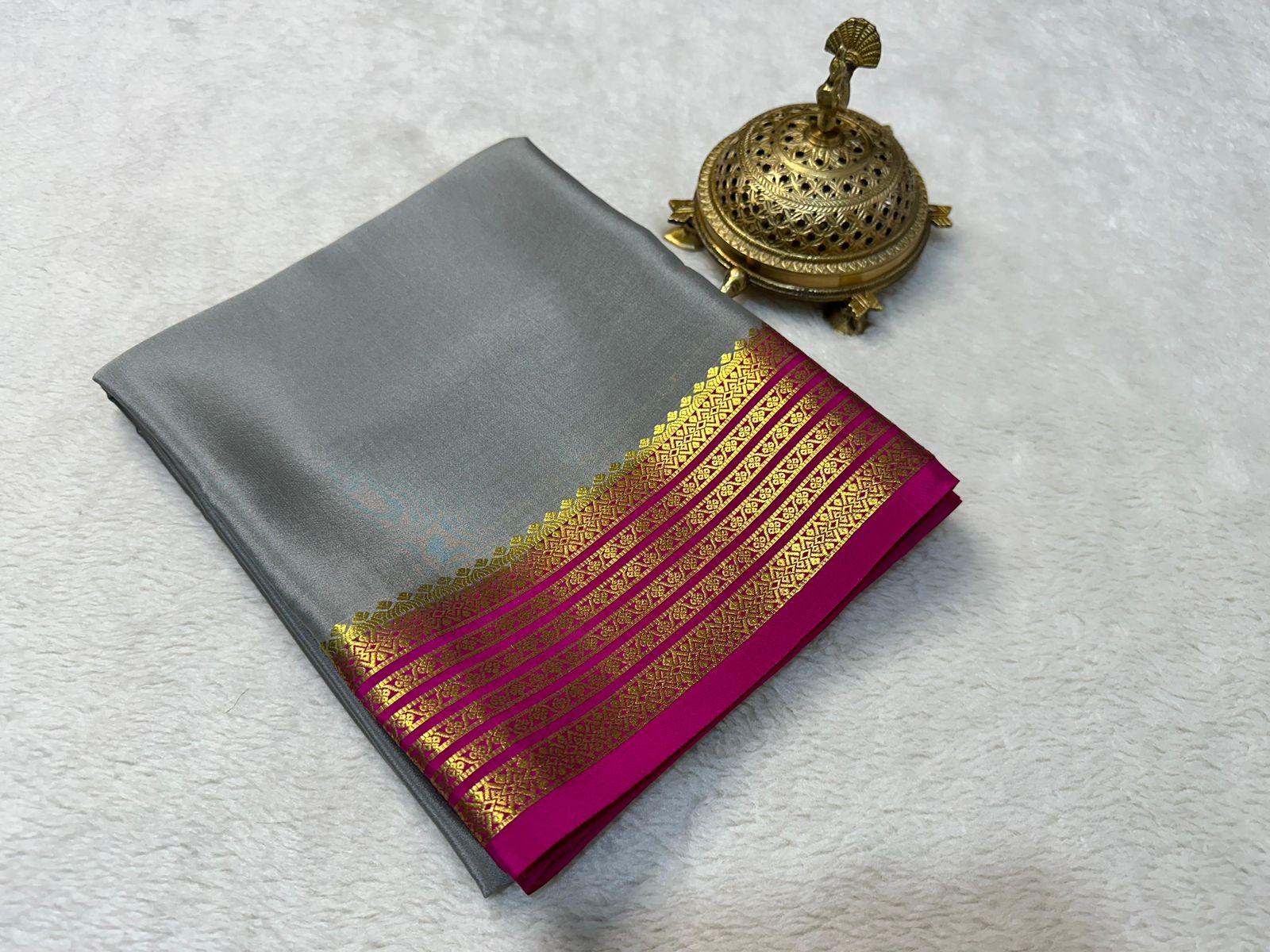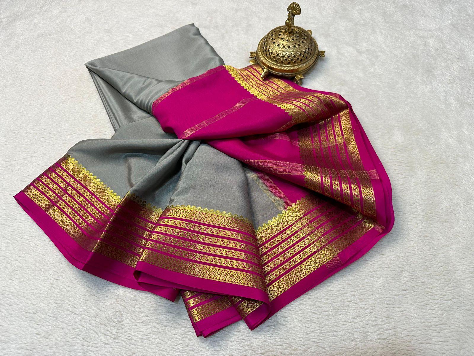 Glistening Grace: Pure Mysore Silk Saree with Shimmering Borders
