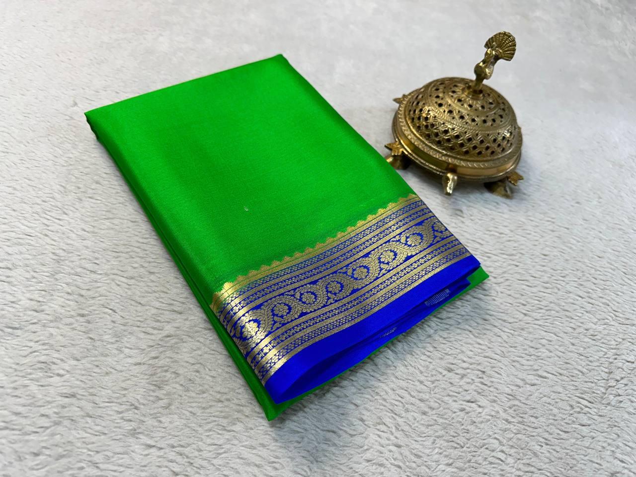 Indulge in the luxurious beauty of Pure Mysore silk sarees. Adorned with a Traditional border and beautiful contrast colour combination, these sarees will bring elegance and grace to your wardrobe. Embrace the passionate and inspiring appeal of these sarees today!
