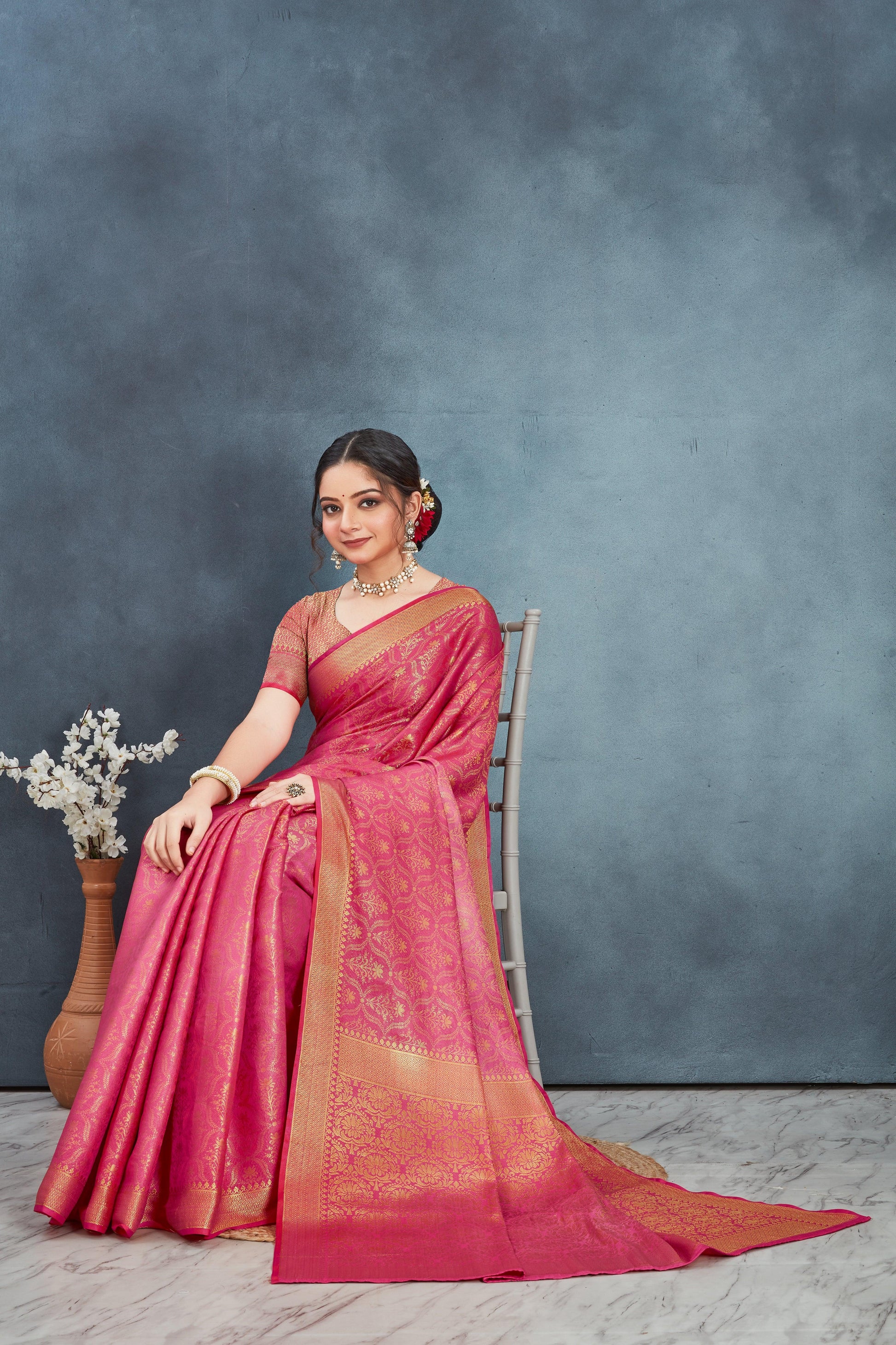 Brocade Elegance: Pure Mysore Silk Sarees in Pink