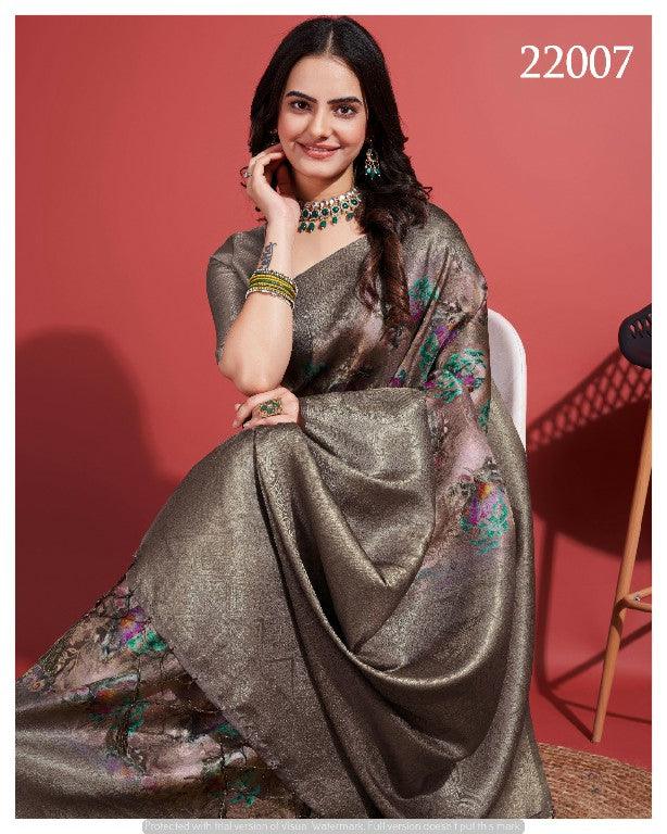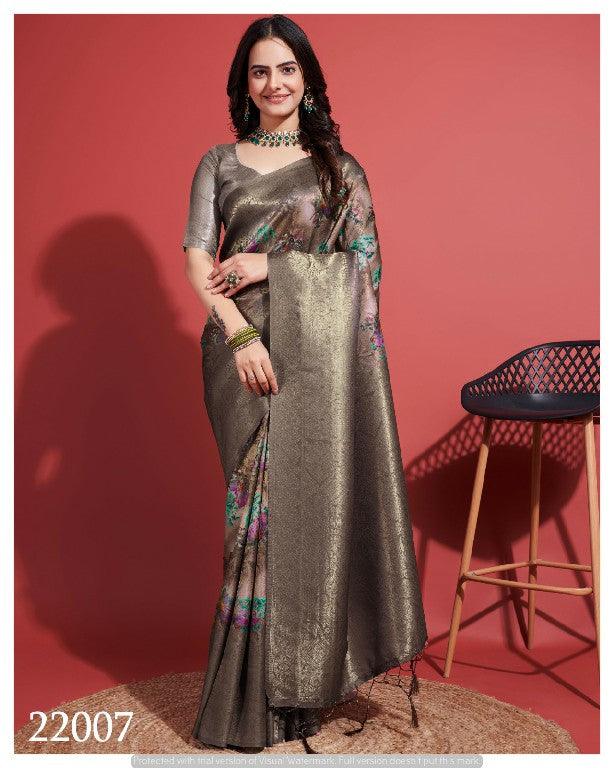 Contemporary Charm: Digital Printed Soft Silk Sarees in Grey
