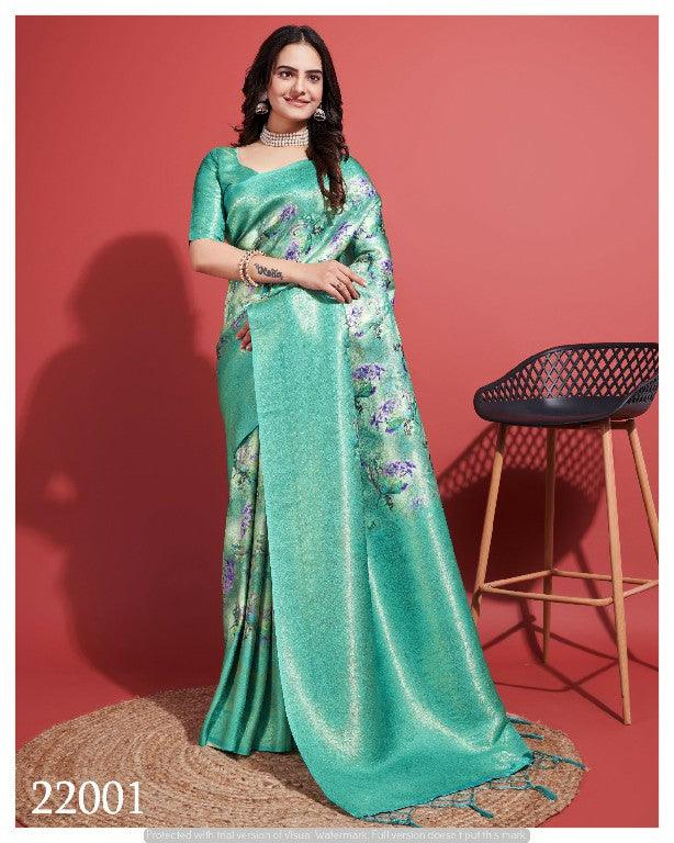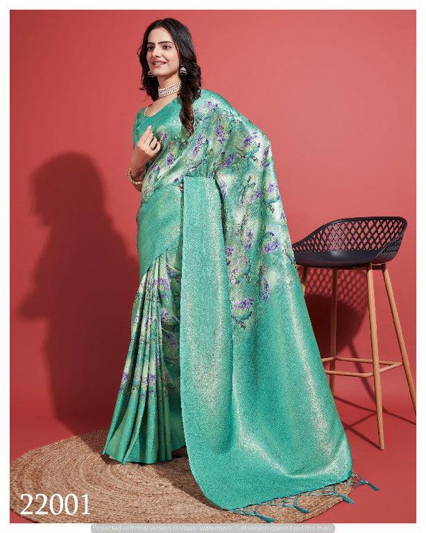 Contemporary Charm: Digital Printed Soft Silk Sarees in Rama