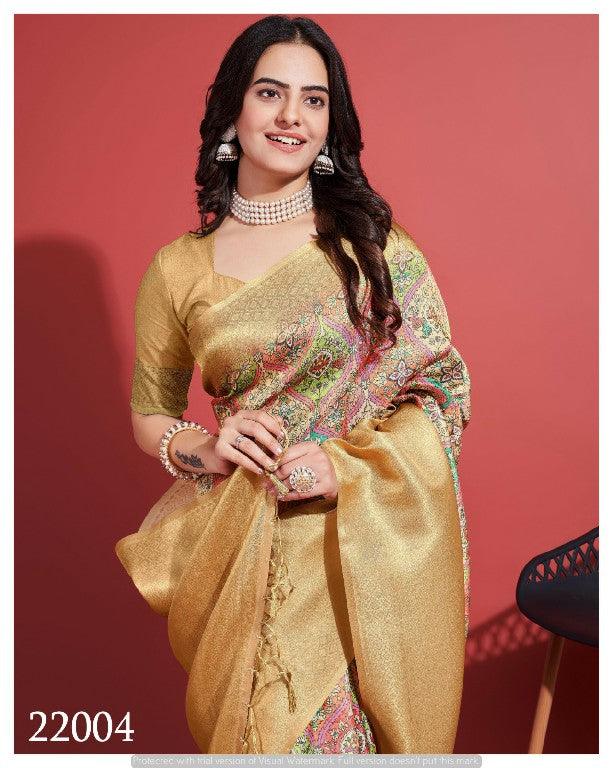 Expertly crafted with the finest Digital printed silk, our exclusive sarees offer a soft and luxurious drape. Elevate your traditional look with the smooth texture and elegant sheen of these sarees. Experience the ultimate comfort and sophistication with our Exclusive Digital printed Sarees.