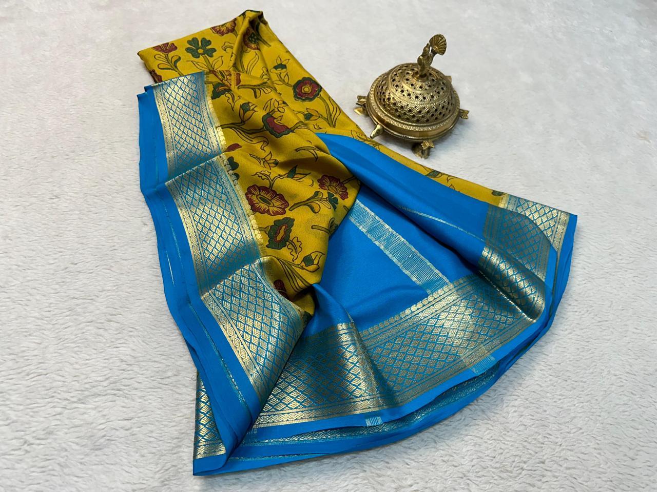 Dazzling Modern Printed Mysore Crepe Silk with Contrast Pallu