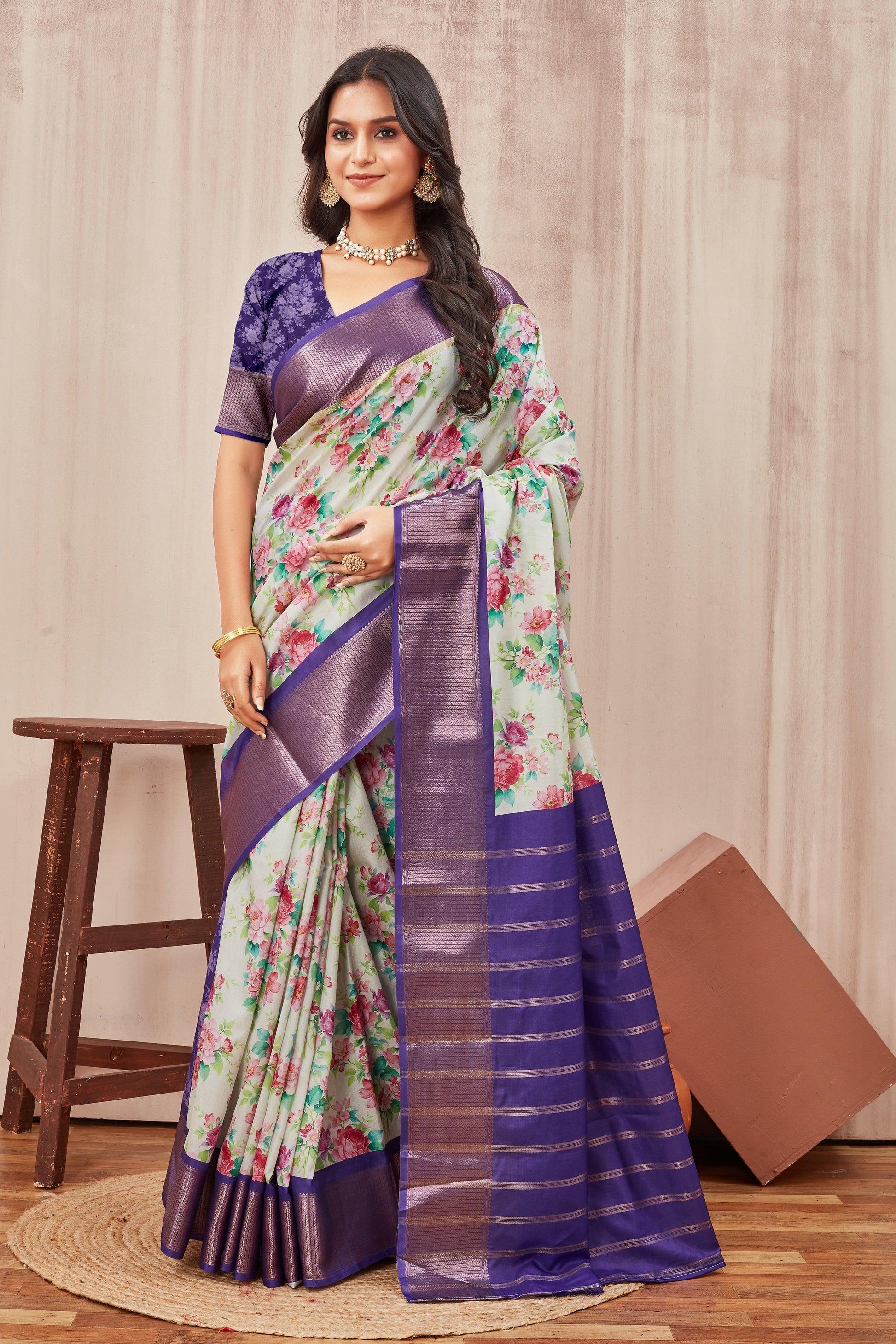 Indulge in the luxurious beauty of Digital printed sarees. Adorned with a Traditional border and beautiful contrast colour combination, these sarees will bring elegance and grace to your wardrobe. Embrace the passionate and inspiring appeal of these sarees today!