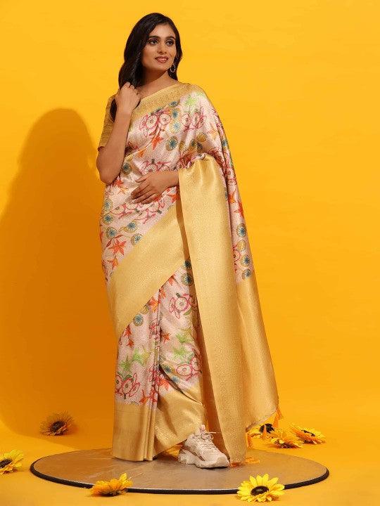 Modern Elegance: Digitally Printed Soft Silk Sarees in Yellow