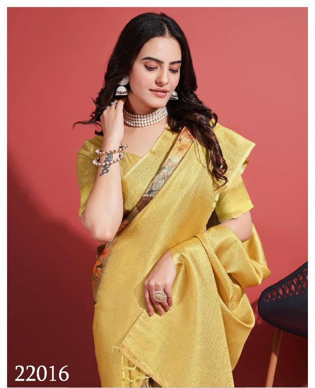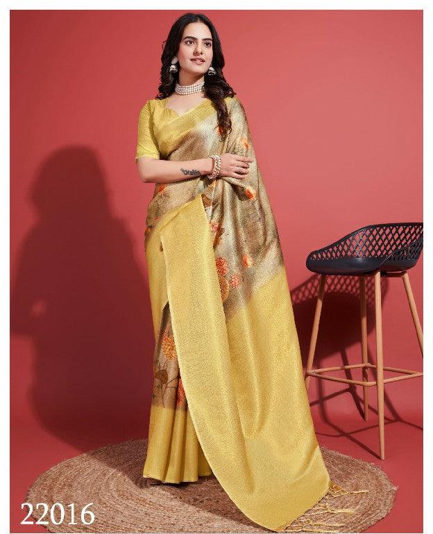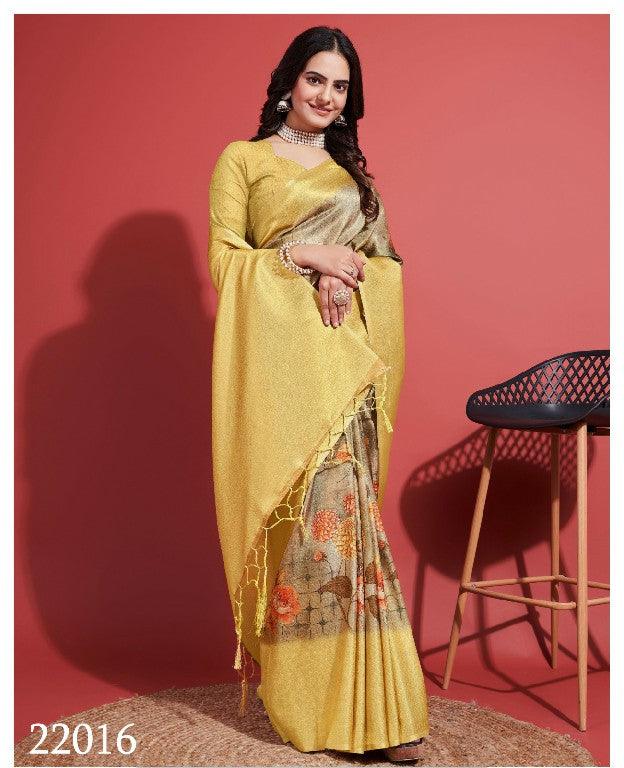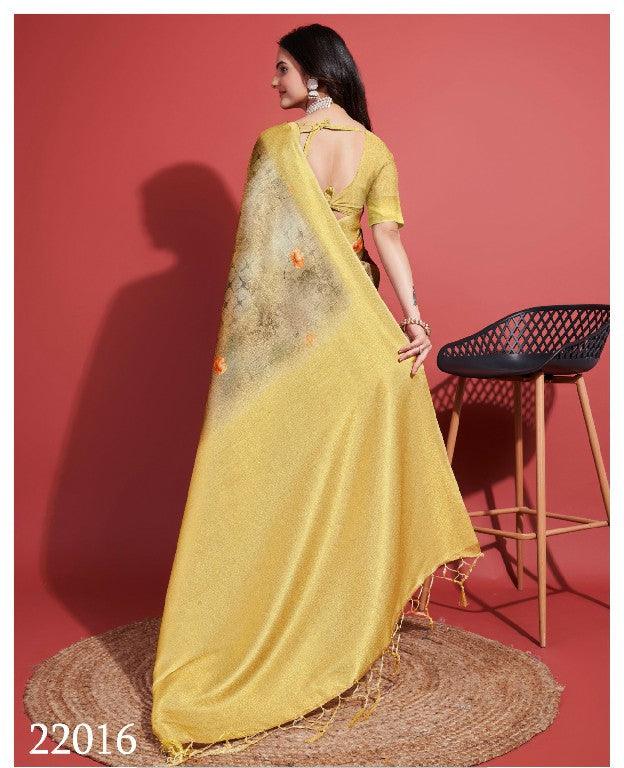 Digitally Crafted Beauty: Modern Soft Silk Sarees in Yellow