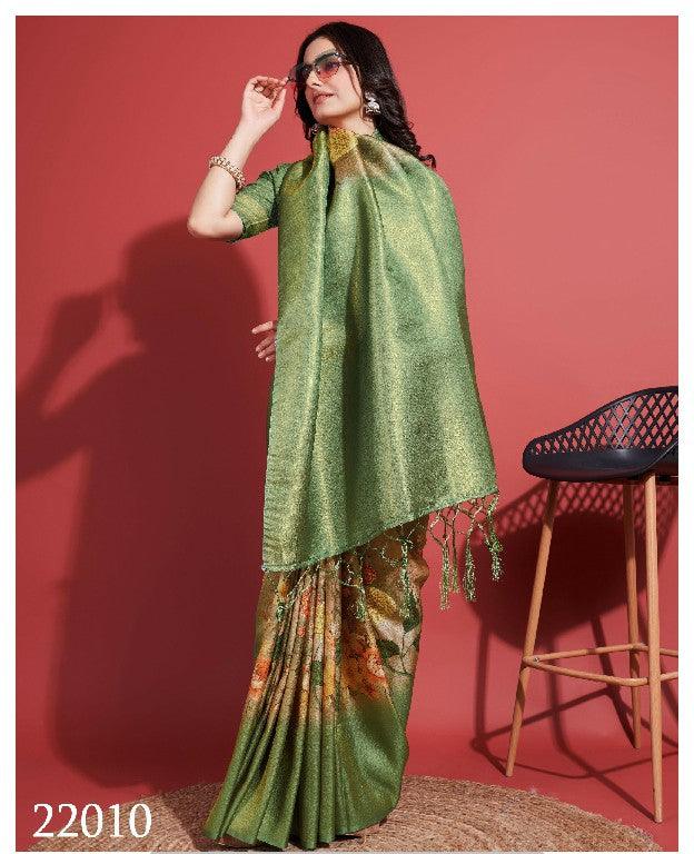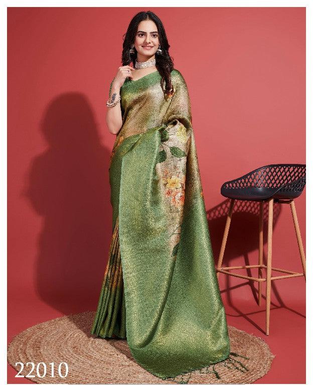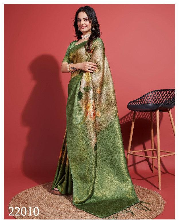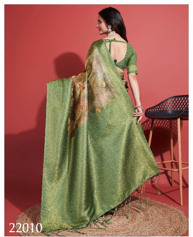 Modern Prints, Timeless Grace: Digital Soft Silk Sarees in Green