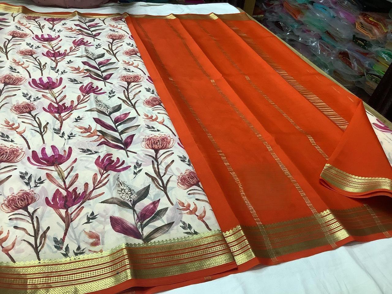 Elegant Modern Printed Mysore Crepe Silk with Kanchi Border
