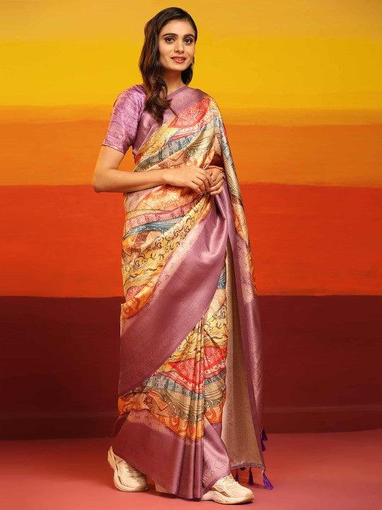 Modern Elegance: Digitally Printed Soft Silk Sarees in Lavender