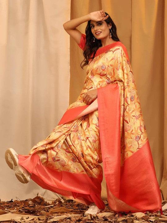 Modern Elegance: Digitally Printed Soft Silk Sarees in Peach