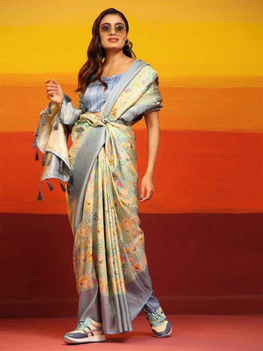 Modern Elegance: Digitally Printed Soft Silk Sarees in Silver