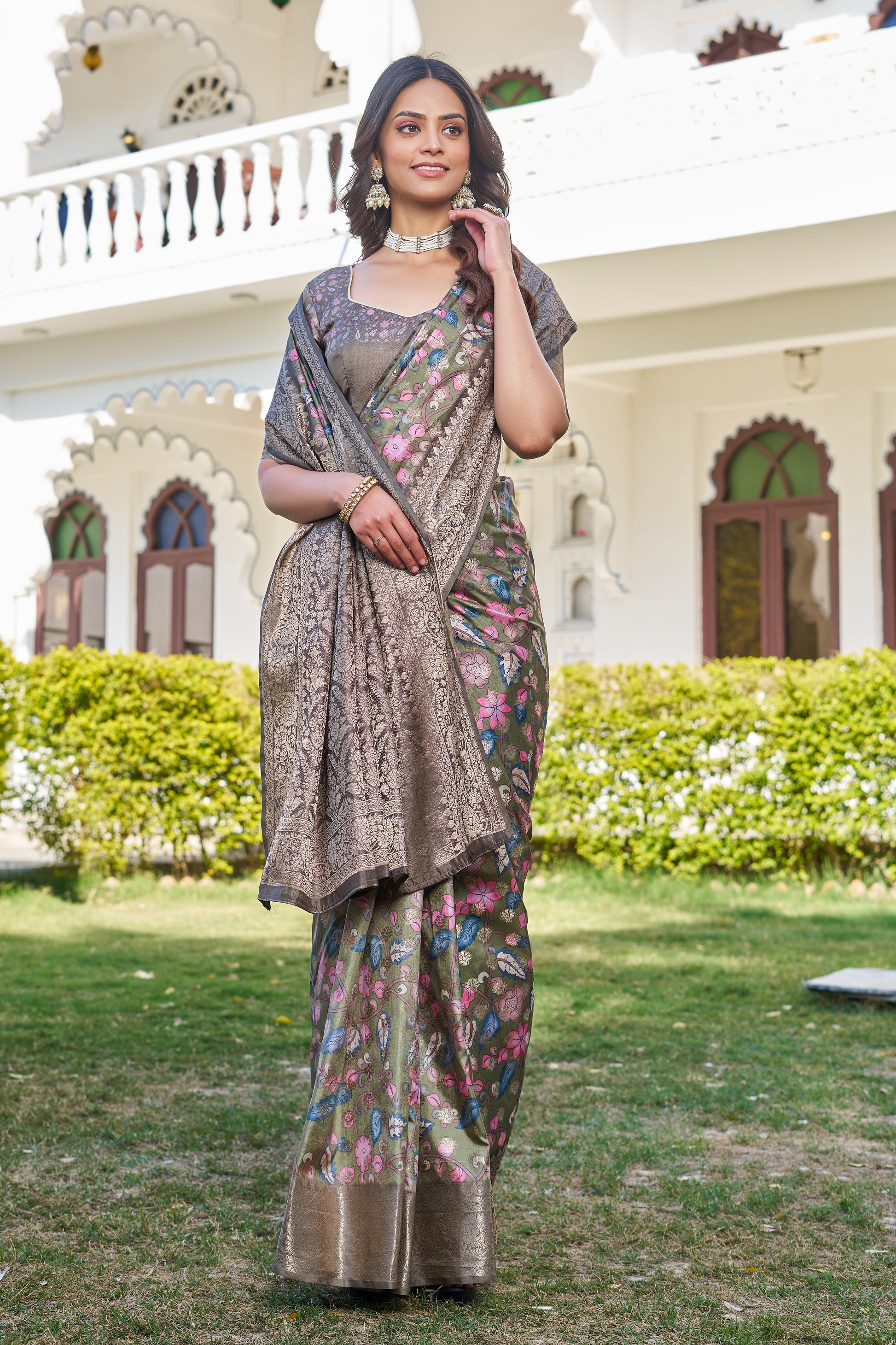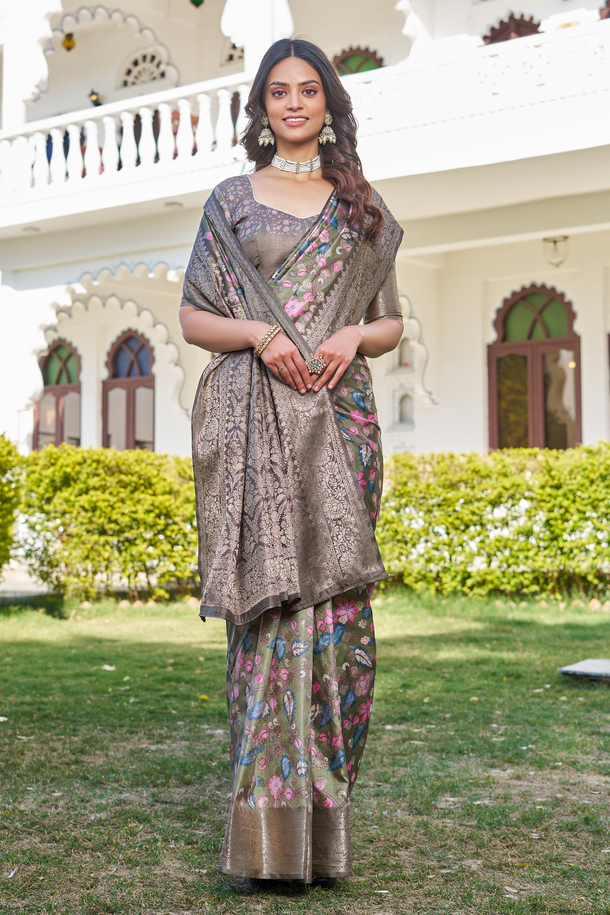 Elevate your style with Elegance Redefined. Crafted from the finest soft silks, this luxurious fabric is expertly woven with full zari detailing. Choose from a selection of elegant designs and solid colors to add a touch of sophistication to any outfit. Perfect for those who appreciate high quality and refined craftsmanship.