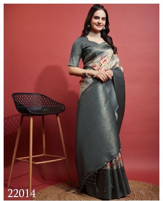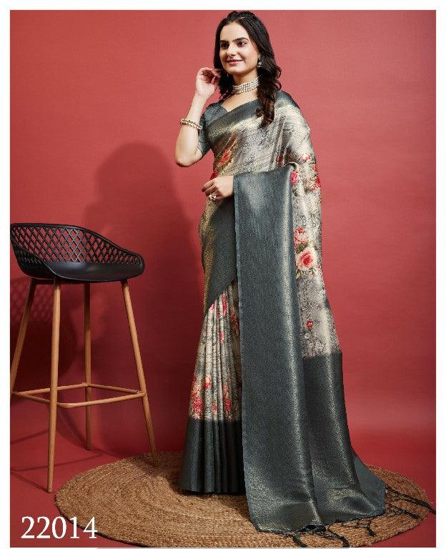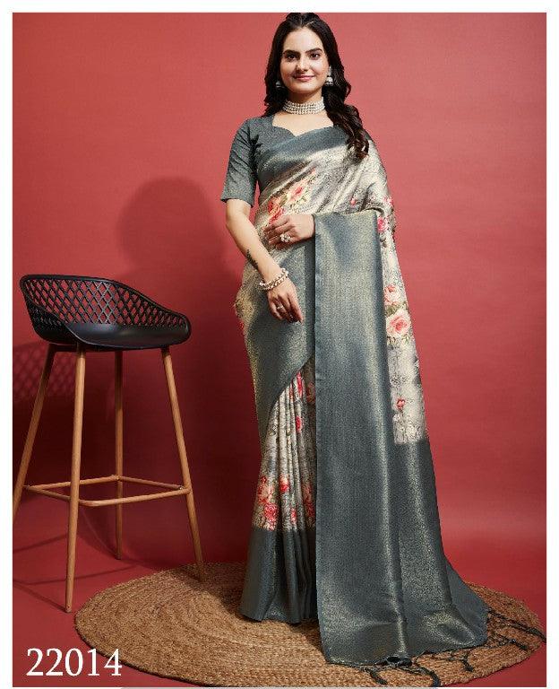 Modern Prints, Timeless Grace: Digital Soft Silk Sarees in Grey