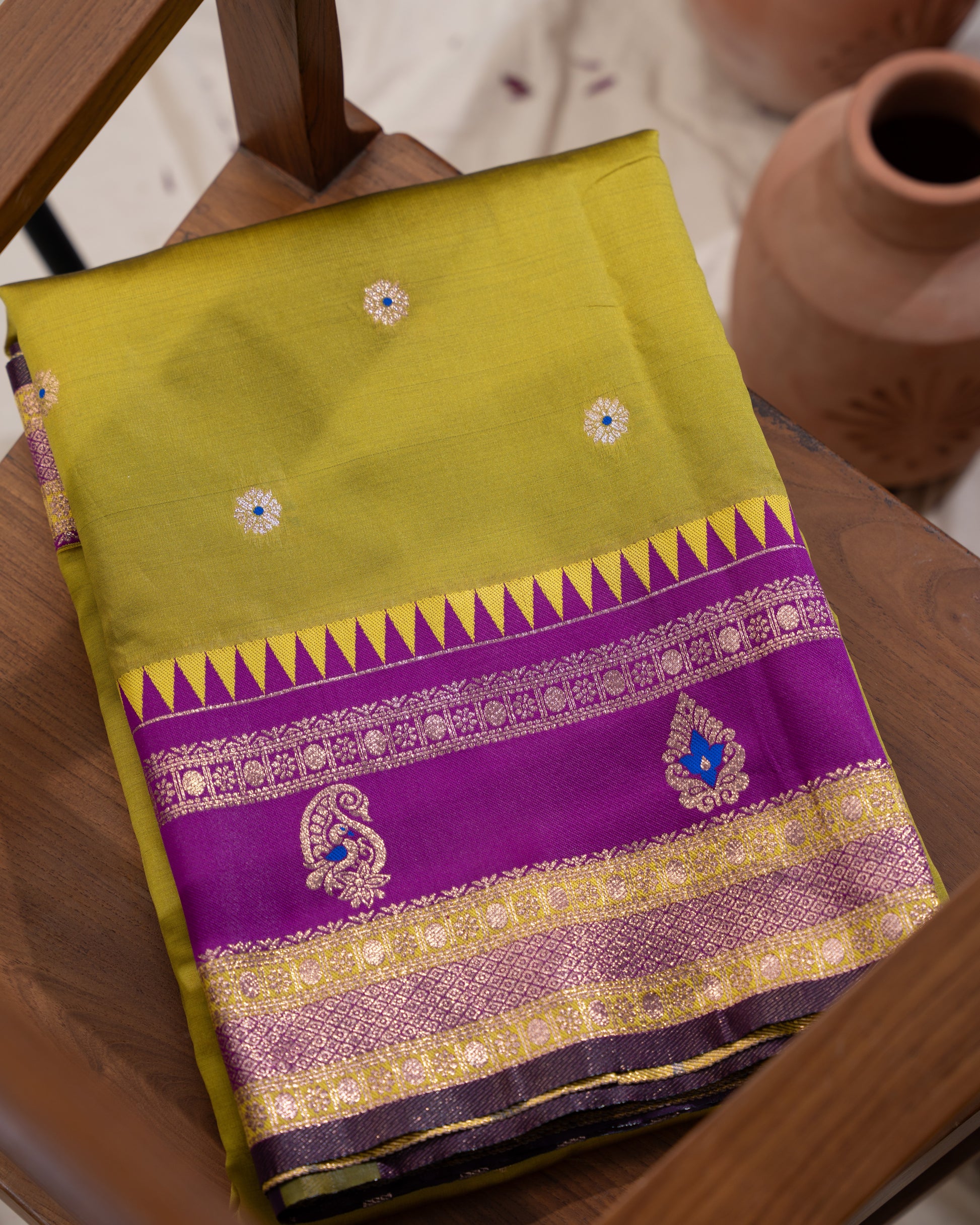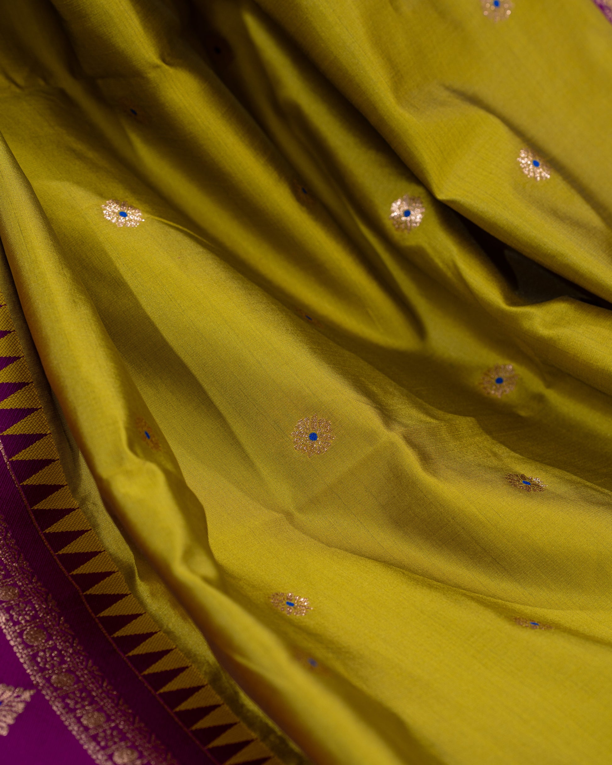 Indulge in the luxurious beauty of soft gadwal silk saree. Adorned with a Traditional border