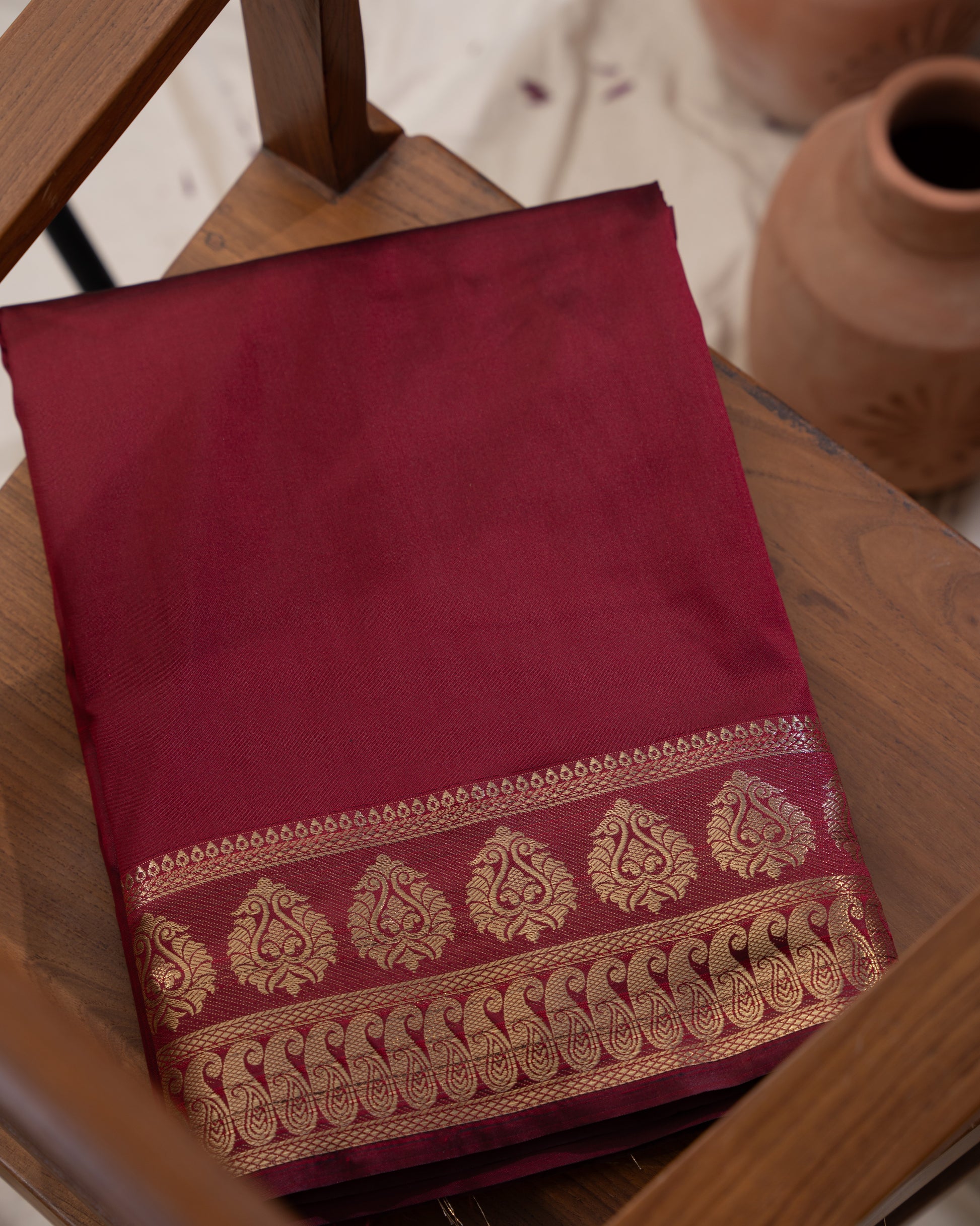 Discover semi mysore soft silk Sarees featuring exclusive Gandaberunda and elephant design borders in elegant self-colours—perfect for festive and wedding wear.