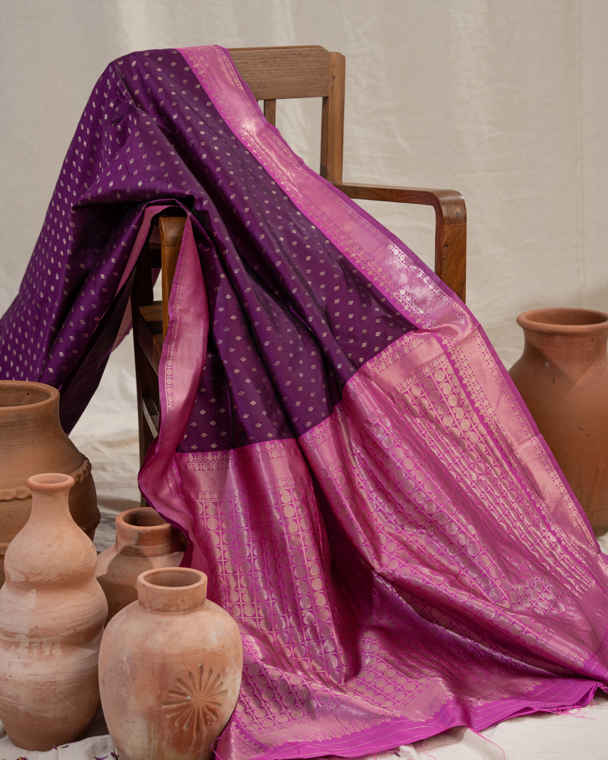 Indulge in the luxurious beauty of kanchipuram soft silk Sarees. Adorned with a Traditional border