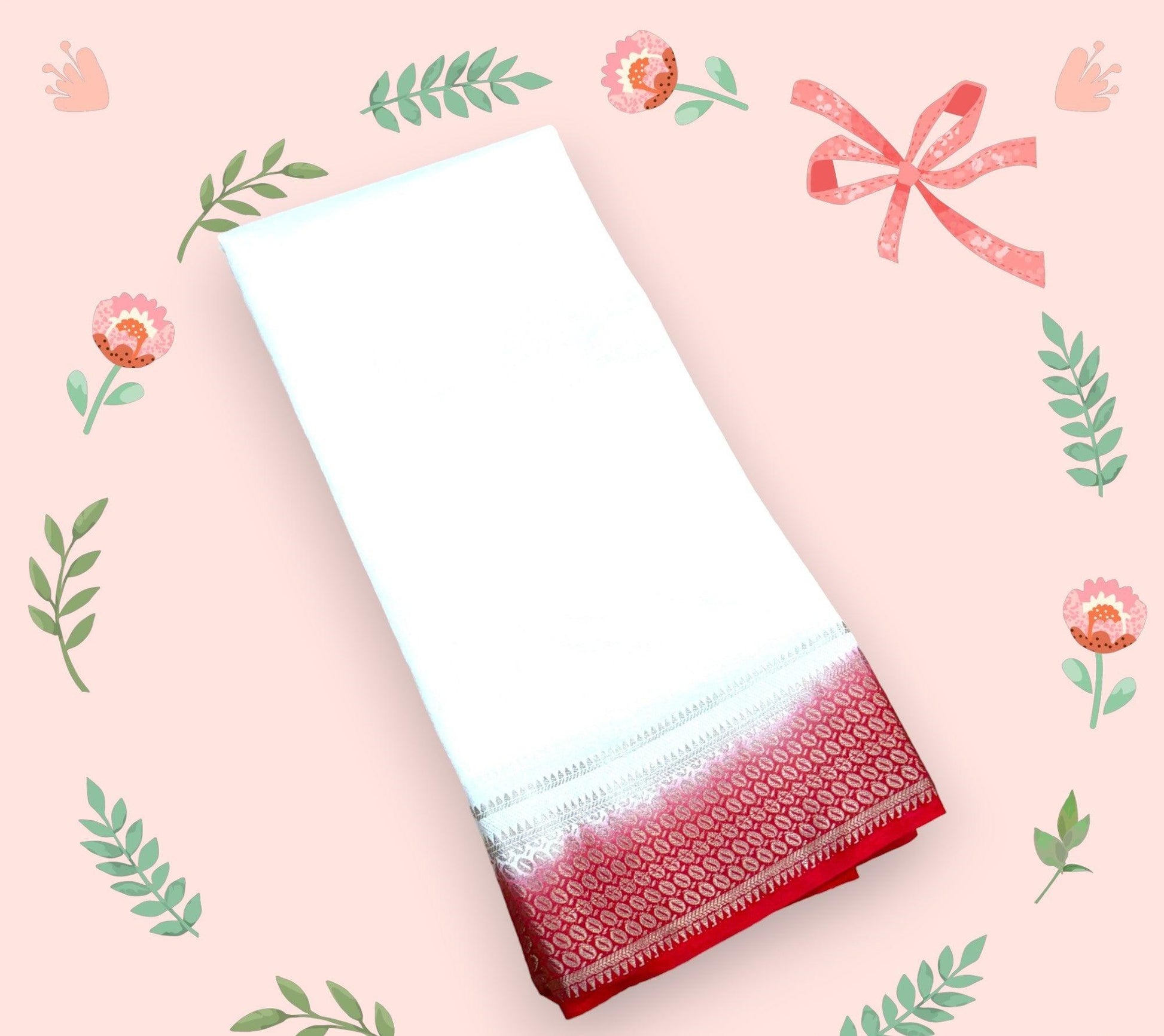 Premium White and Red Border Soft Silk Sarees – Graceful Festive Look