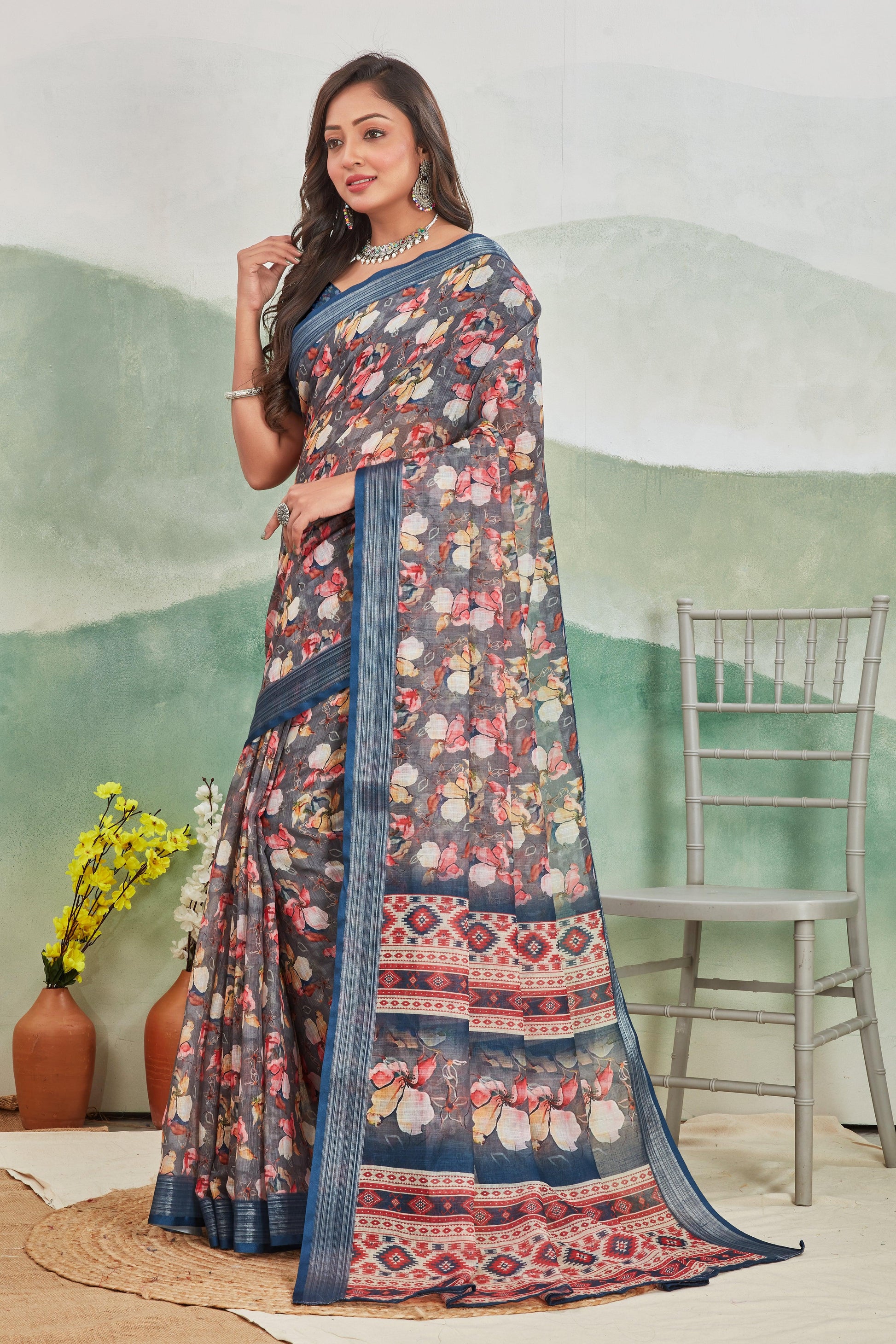 Midnight Elegance: Pure Linen Saree in Dark Blue for Every Occasion