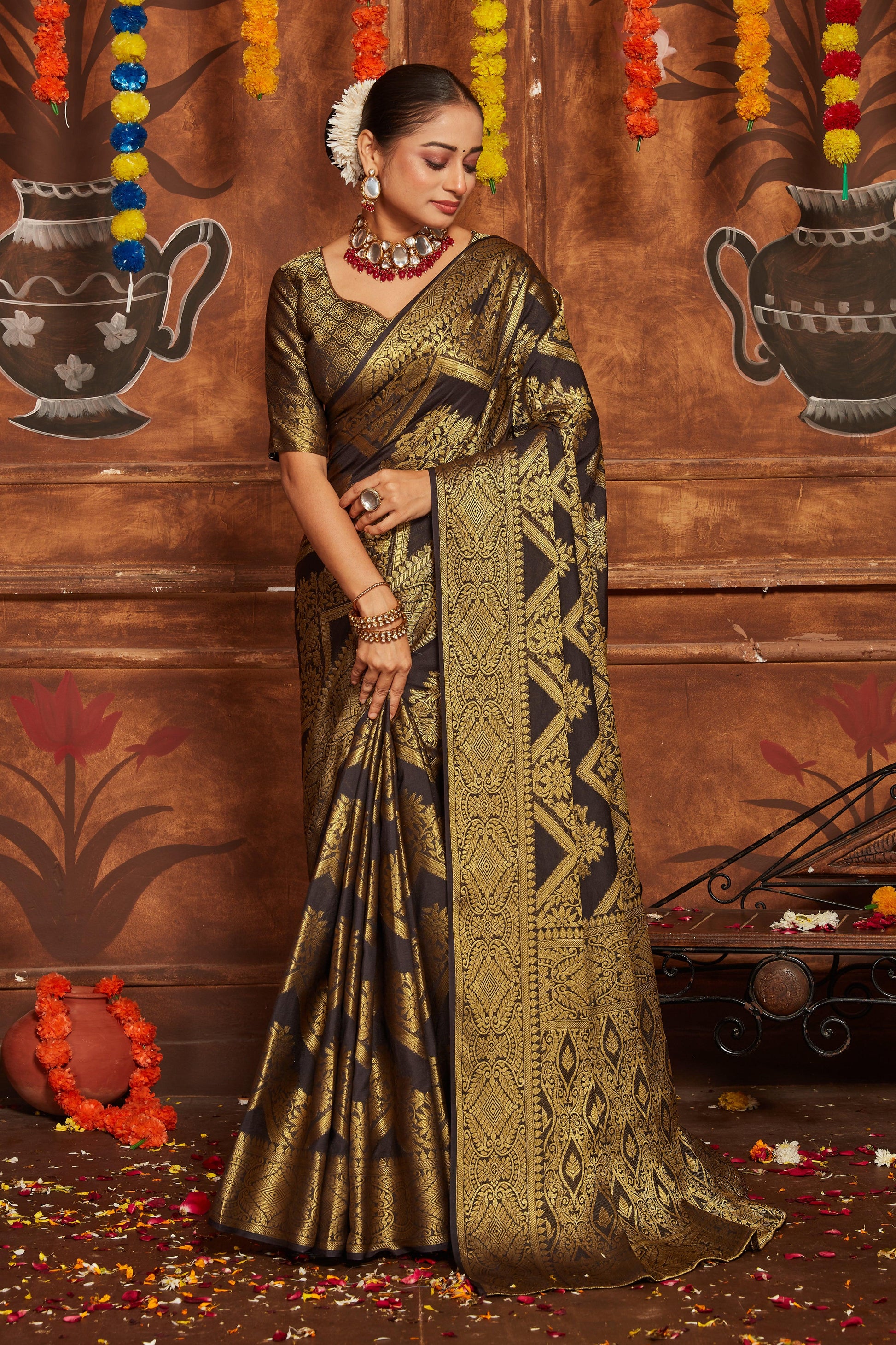 Elevate your style with Elegance Redefined. Crafted from the finest soft silks, this luxurious fabric is expertly woven with full zari detailing. Choose from a selection of elegant designs and solid colors to add a touch of sophistication to any outfit. Perfect for those who appreciate high quality and refined craftsmanship.