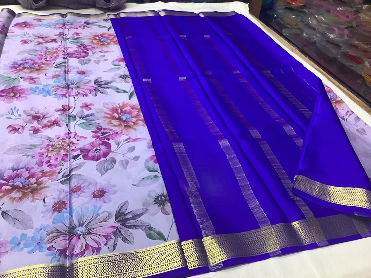 Experience the exquisite beauty of Pure Printed Mysore Silk Sarees. Featuring a classic border and stunning contrast color combination, these sarees exude elegance and grace in your wardrobe. Embrace the captivating and inspiring charm of these sarees today. Created with the highest quality Pure Printed Silk, our exclusive sarees provide a plush and opulent flow. Elevate your traditional attire with the silky smooth texture and refined shine of these sarees. Indulge in the ultimate comfort and sophistication with our Exclusive Pure Printed Silk Sarees.