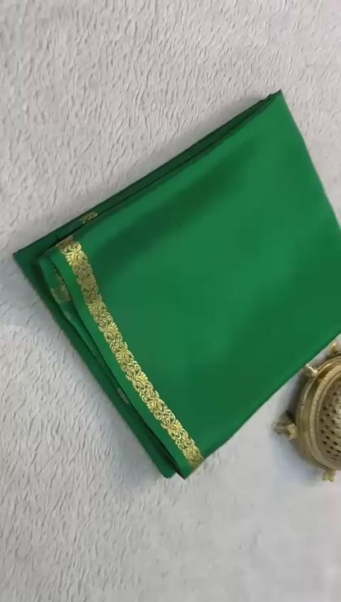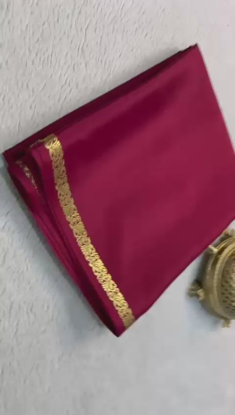 Discover the timeless elegance of our Mysore Crepe Silk Sarees, crafted with an exquisite small border and a sophisticated line pallu in stunning solid colors. These sarees are a perfect blend of tradition and contemporary style, making them an ideal choice for any occasion.